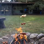 Goście mogą zjeść posiłek w jadalni na świeżym powietrzu, wyposażonych w urządzenie do parzenia kawy/herbaty. Do dyspozycji Gości są również kuchenka mikrofalowa, lodówka i przybory kuchenne. Goście mogą również w 39 min dojechać samochodem z lotniska Olsztyn-Mazury do willi. Na miejscu do dyspozycji Gości są również park wodny, miejsce na piknik i ruszt do barbeque, a także jacuzzi i sauna. Na miejscu można uprawiać zajęcia wodne, windsurfing i kajakarstwo.